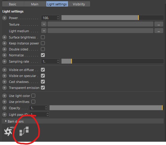 1. Open the node editor by clicking the node icon at the bottom of the light tag settings (pic 1) 2. Reconnect the nodes that should have been connected properly when we create the Spotlight object (pic 2) J.