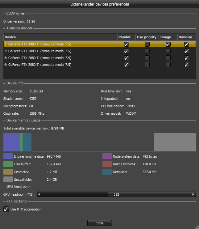 C4D R21.207 / Octane for C4D 2020.2.4 / Watercooled 4 x EVGA Geforce RTX 2080 ti