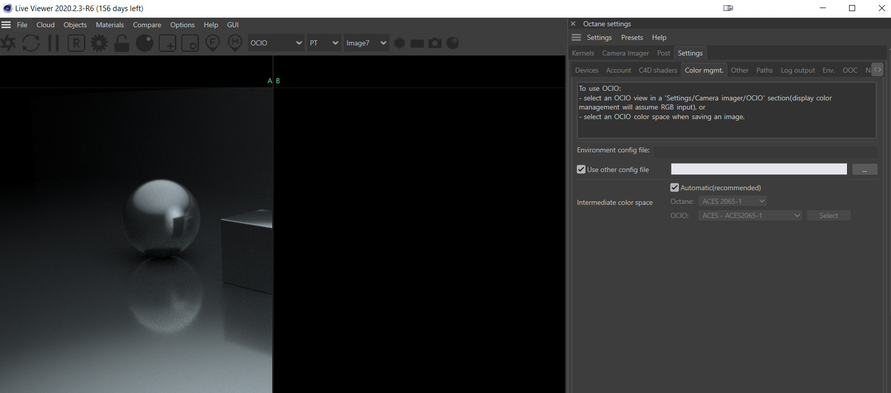 Live Viewer A/B comparison black when color space set OCIO