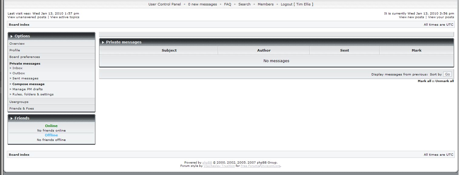 No field for text entry. No PM button on boards next to any post or members profile.