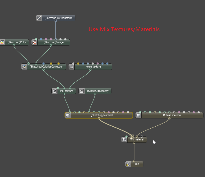 - Some preset [Sketchup] material/texture nodes will be auto-created in the node graph
