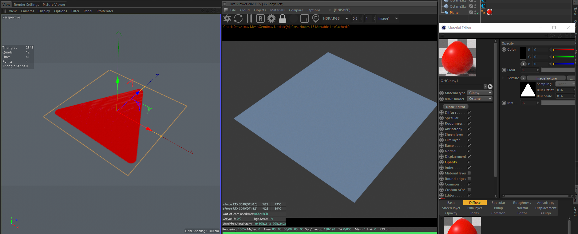 The clay mode in Octane 2020 seems to be ignoring the opacity data of all materials. This used to work perfectly fine in Octane v4. Is there some sort of hidden setting I'm missing?