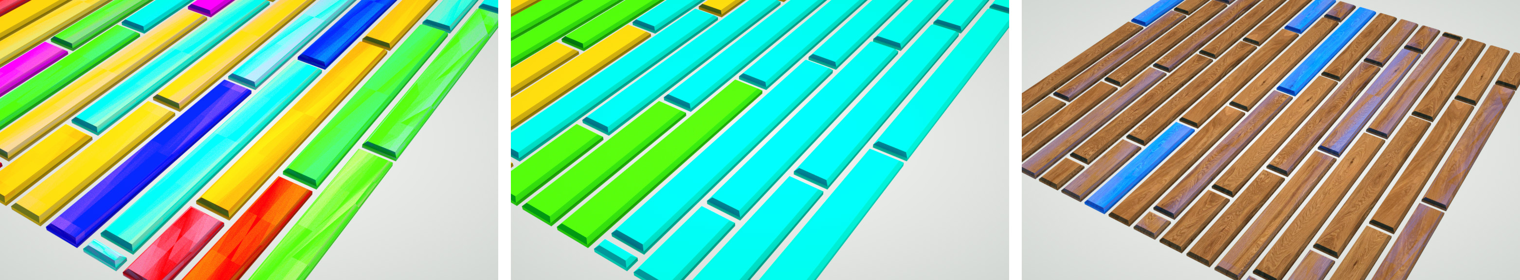 We have assigned colors randomly to the isolated elements of the geometry.