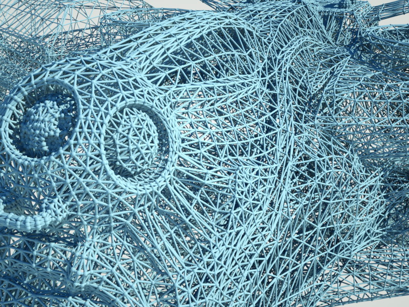 This is a script to create a solid wireframe version of a mesh. The script goes through the polygons and replaces edges with hair primitives and vertices with spheres.