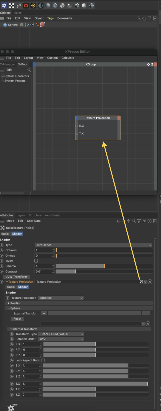 Trying to figuring out if there is a way to animate Octane noise texture projection using sound effector with xpresso. Attached my texture node if it helps to help me : )