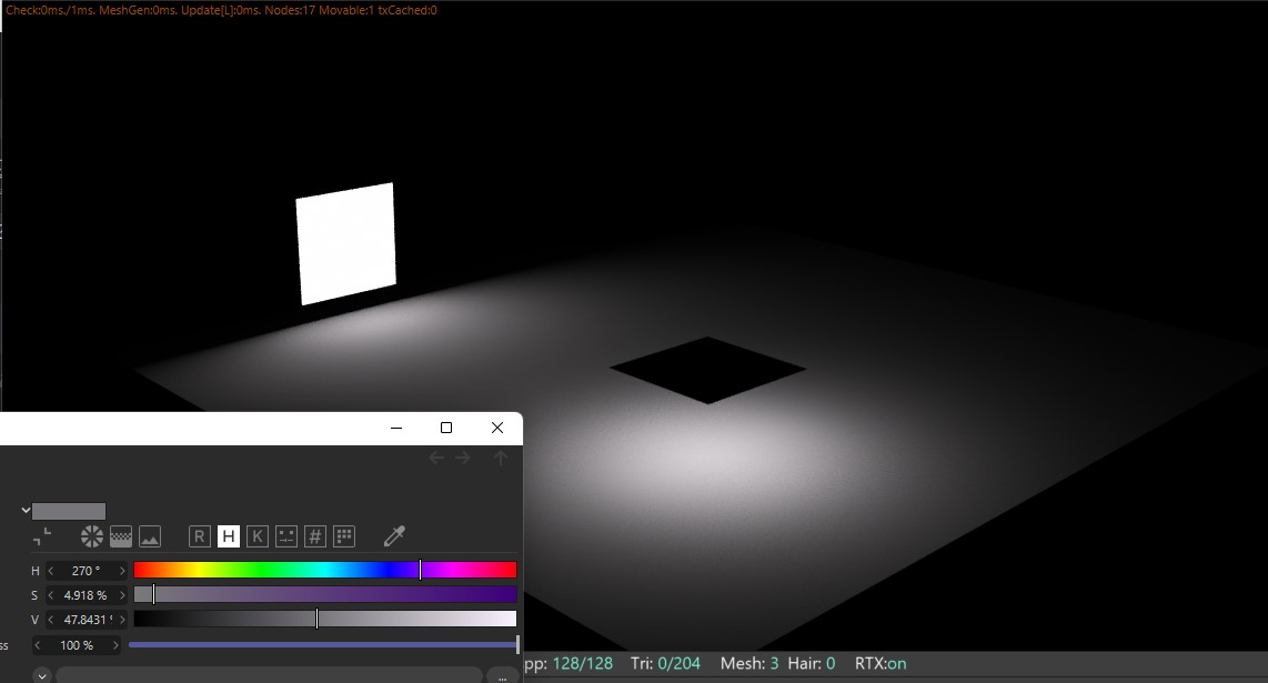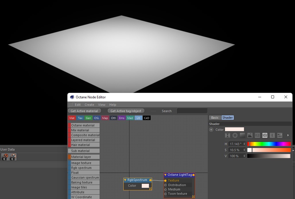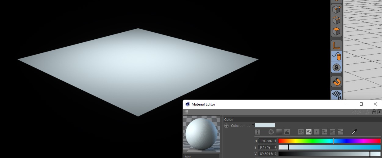 For reference, this is what we get with a white material and a default octane light, a good 10% blue saturated surface (the material view is just there to show what colour the image is rendering as, the actual octane material on the plane is white):