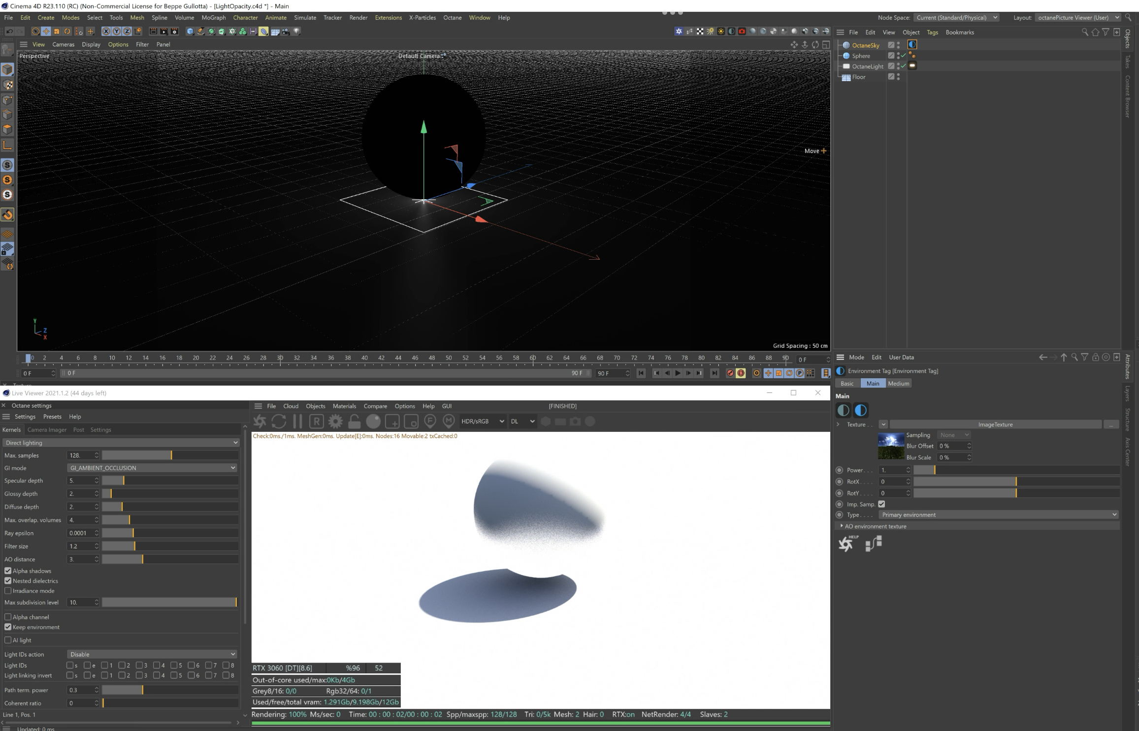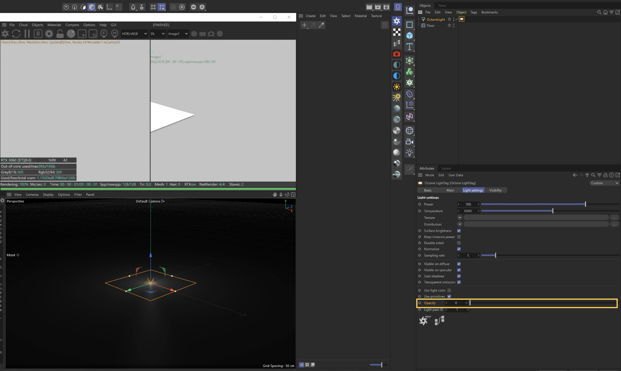 If you turn off opacity lighting from light is gone