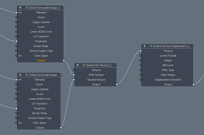i'm trying to combine 2 textures as displacement textures. i tried Mix, Multiply and Add but in all cases nothing happens (the displacement is ignored)
