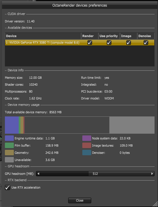 Further found that Octane sees 12GB VRAM when just 3080Ti installed but has 4 unavailable?