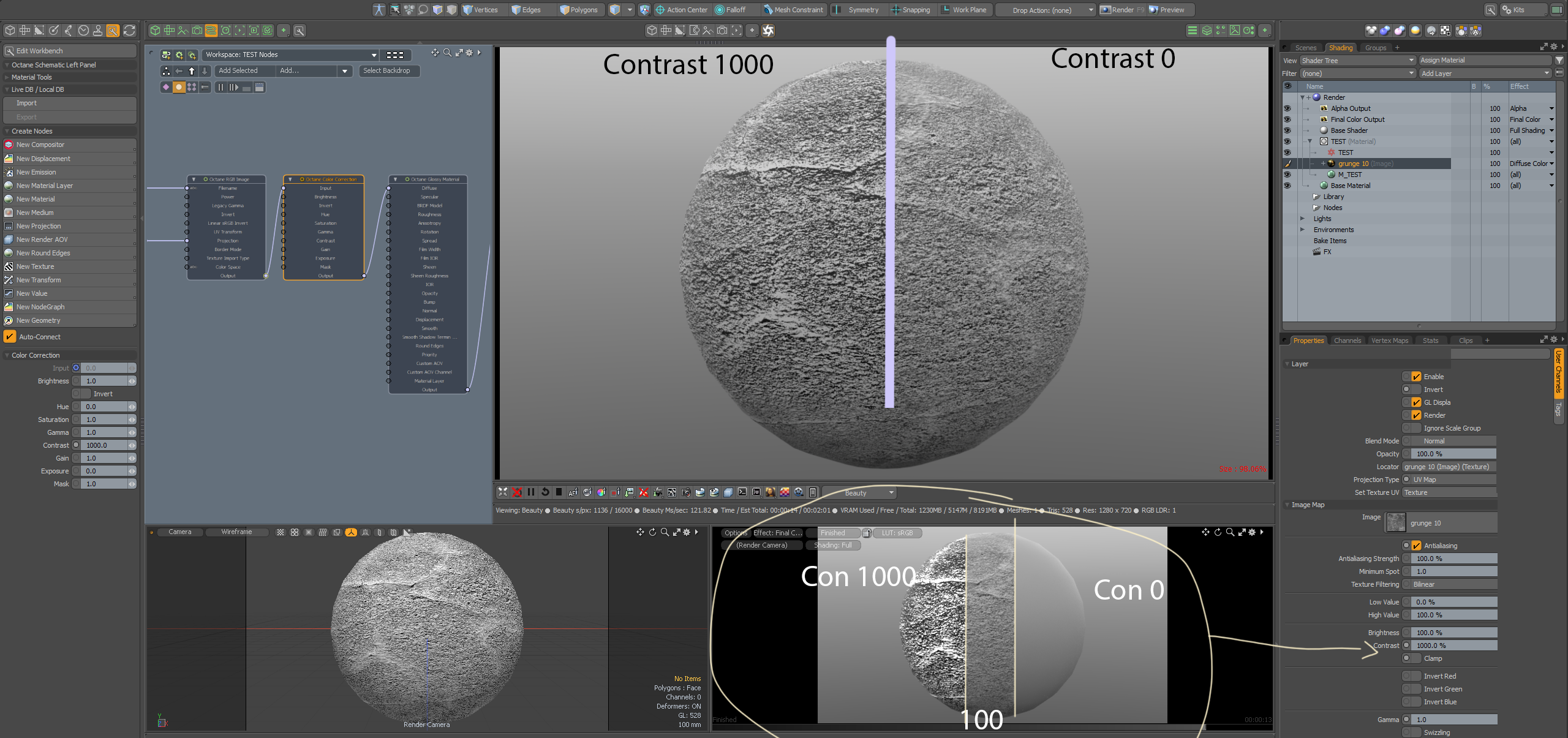 the Contrast Setting of the Octane Color Correction Node doesnt work with the texture i plugged in.