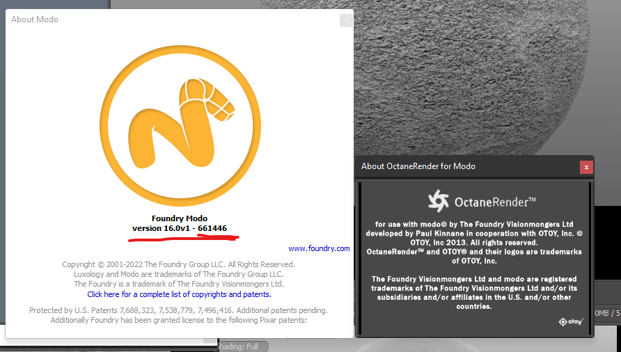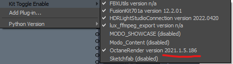 Version is displayed in the bottom status window in the OctaneRender layout