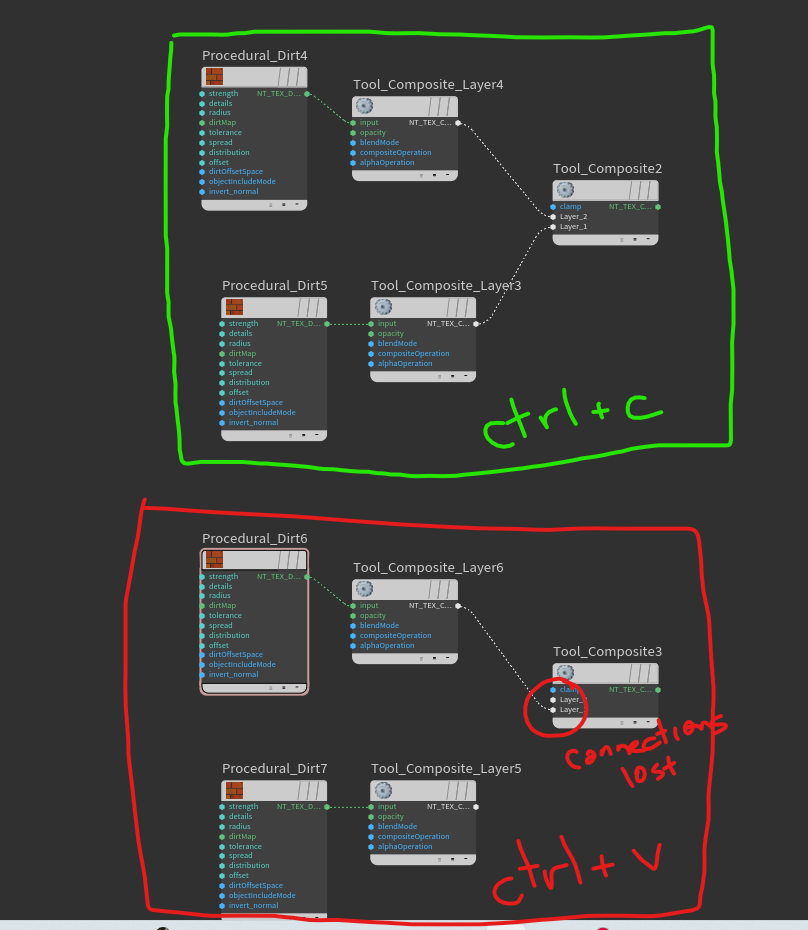 When I copy paste the nodes (see attached screencapture), the input connections to the tool_composite node get scrambled or disconnected.