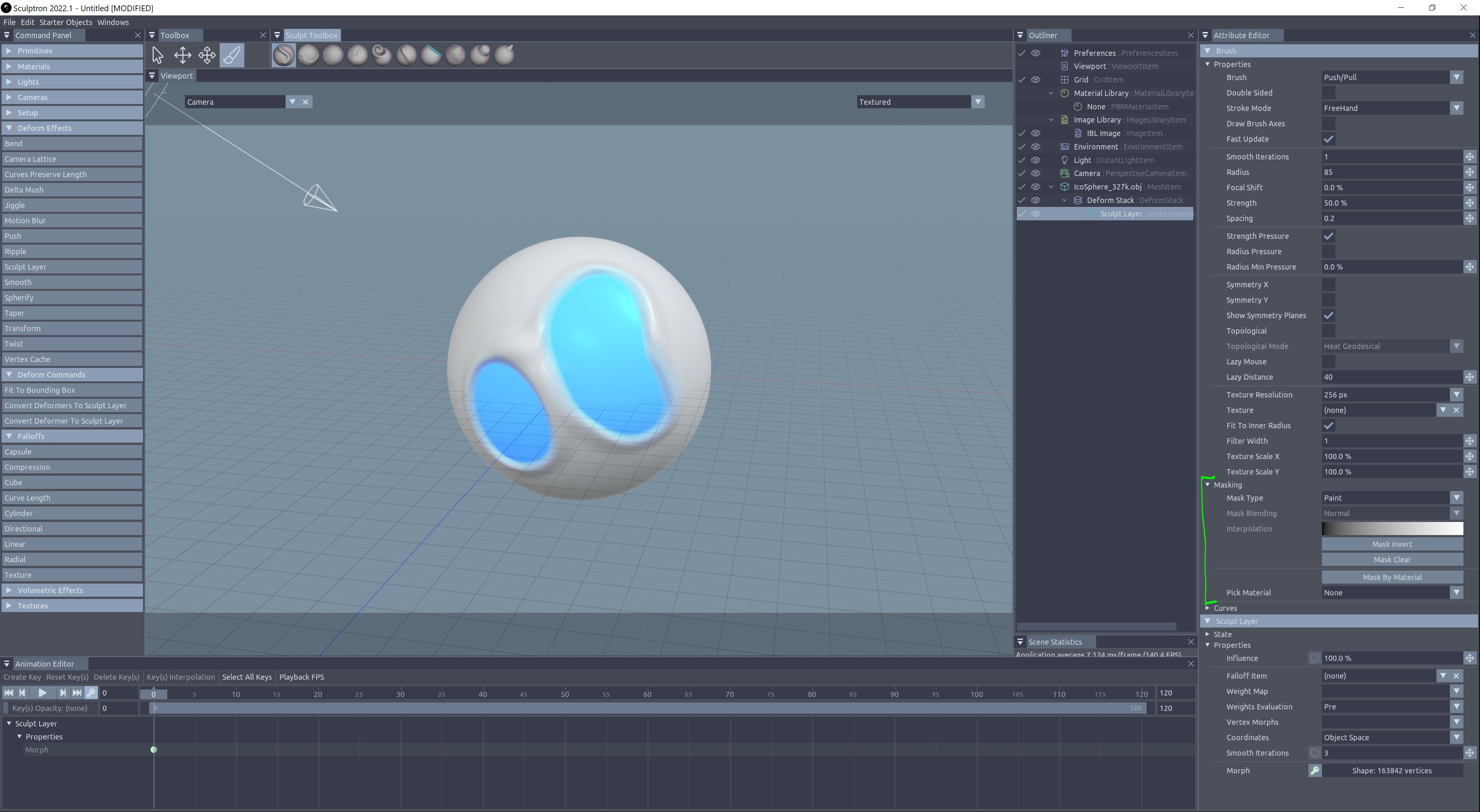Sculptron is a GPU based sculpt-animate application.