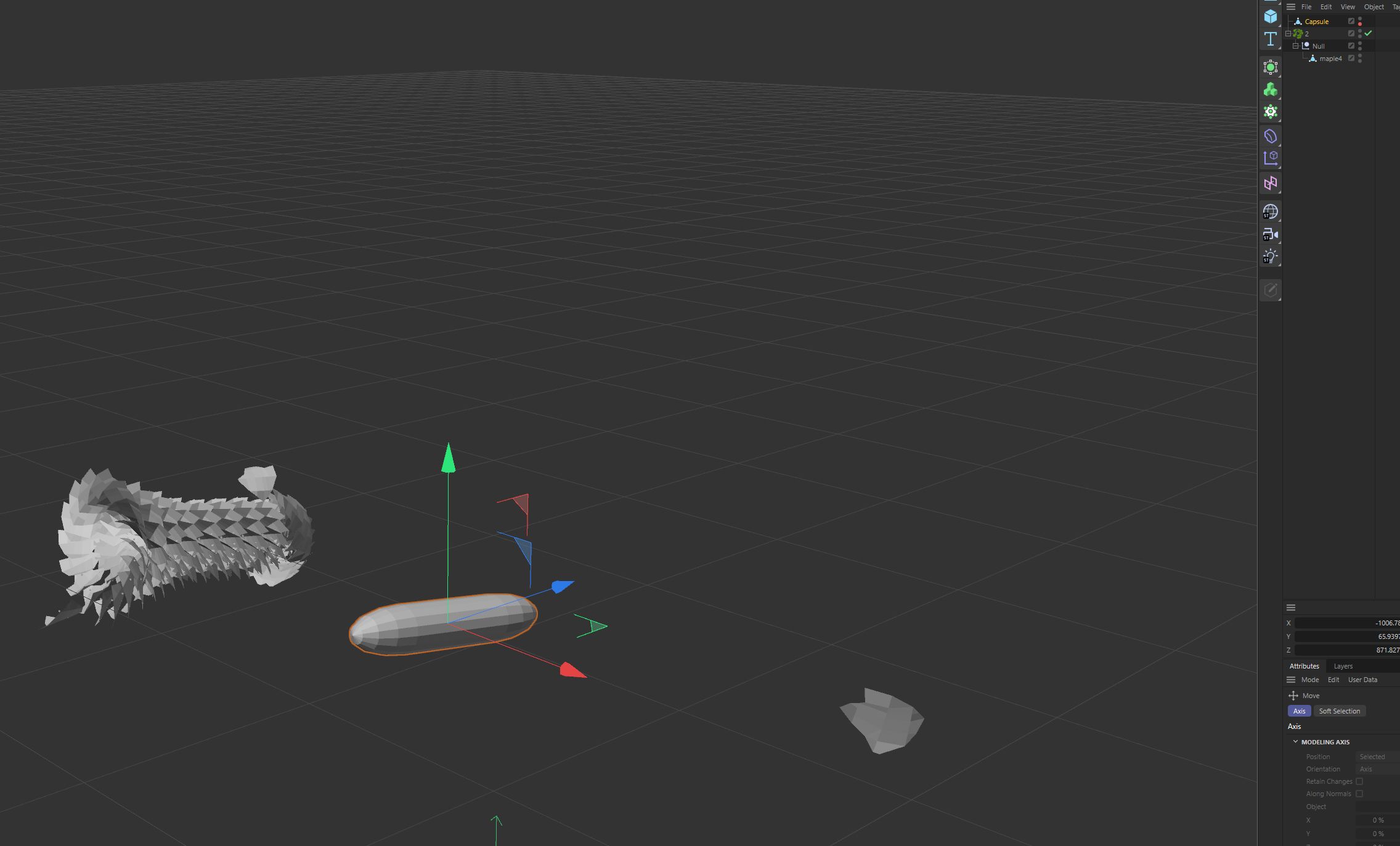 Anyway, here's a few screenshots of my issue. I'm using the capsule as a control object for the leaves, i.e. the leaves are scattered onto the capsule with position and rotation modifiers. When I move the capsule, the leaves stay put. When I turn Scatter off and back on again, it updates to the new position.
