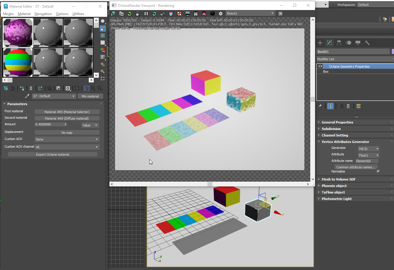 However in Octane when I plug the multi/sub-object material into a Composite material or Mix material it shows the material as either grey or it pulls in the first material id in the multi/sub-object material