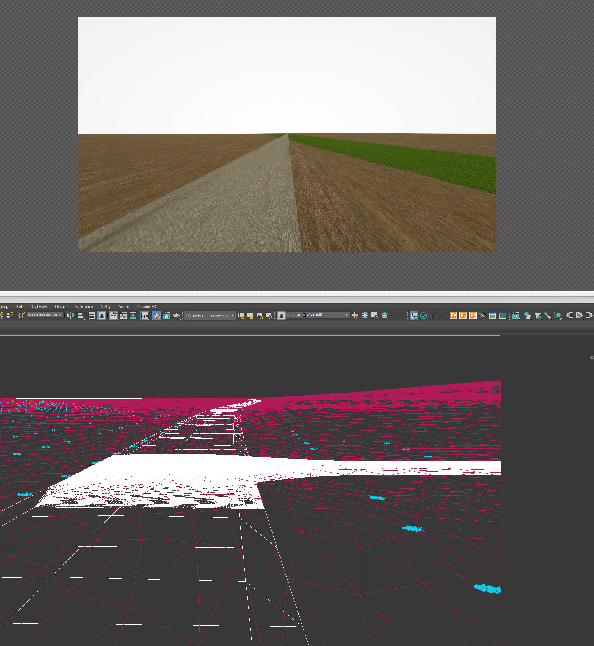 Octane viewport preview stretches FOV but the scene camera and FOV looks good.