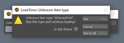I am really sorry, but this is still crashing Modo when loading for me. It first gives a warning 'Unknown item type "shArrayPrint". Skip this type and continue loading?', and it crashes if I respond with "Yes to All"Hesekiel2517 wrote:Hi Paul,