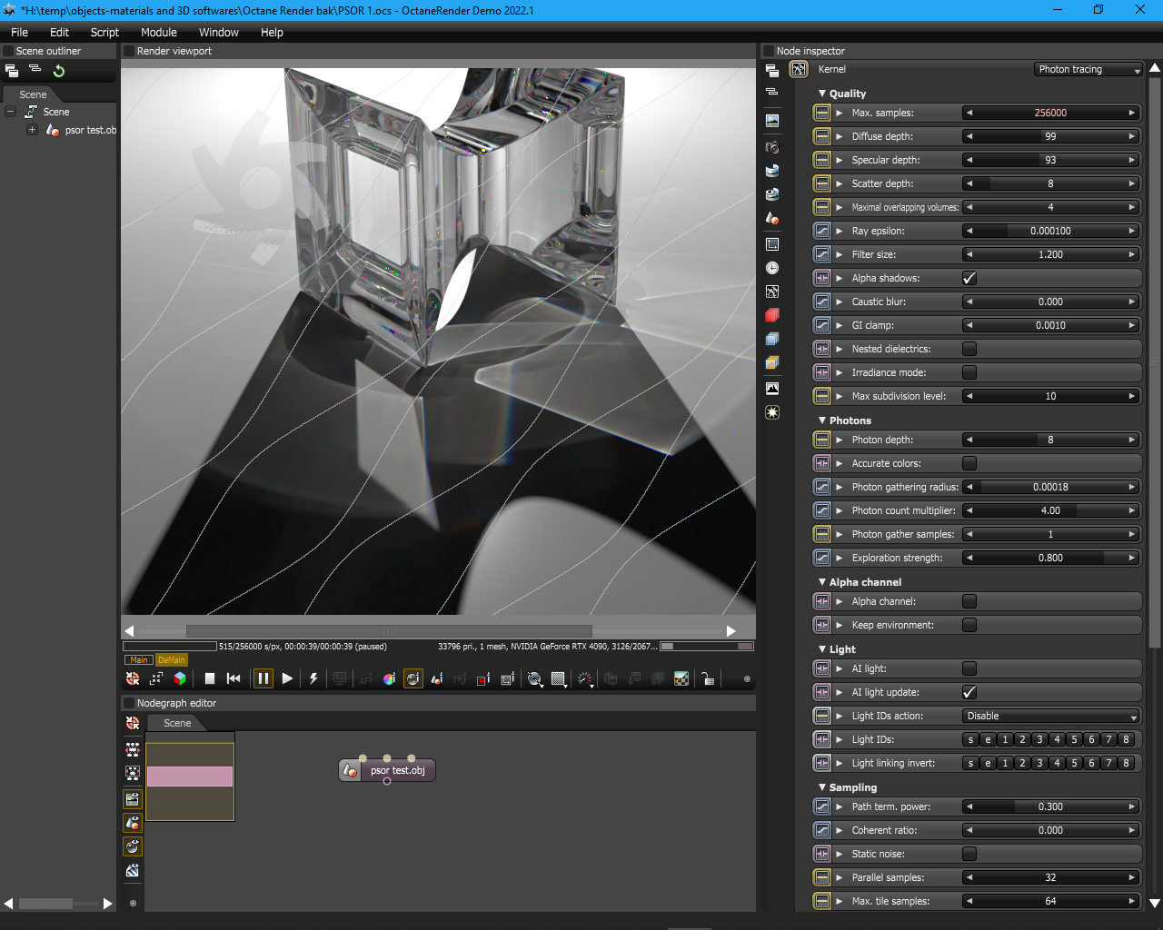 -PT (path tracing) kernel at 4M samples per pixel (= 4 laps of regions picked bottom of 1MS/px) -PT with denoiser (same MS/px) - look highlights -new Photon Tracing kernel with denoiser at 515 S/px but no any variable caustics (less than 0.3 roughness ground) We don't want any blur nor any invisible for caustics for PT kernel but AI denoiser improved for caustics in next version of OR.