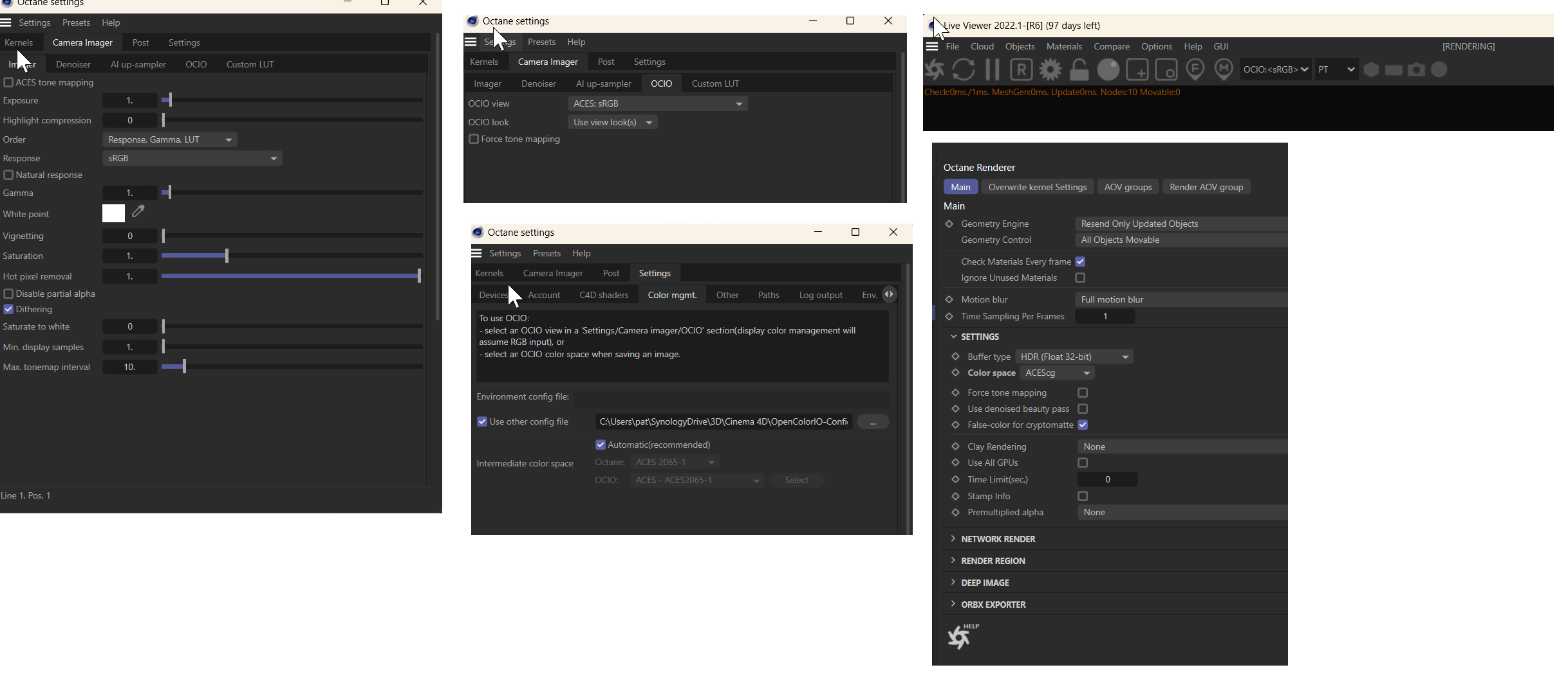 But when I have ACES enabled in my C4D Project tab I get way different color results in the Live Viewer than I do if I have it set to: Color Management "Basic", Linear Workflow: Checked, Input Color Profile: SRGB.