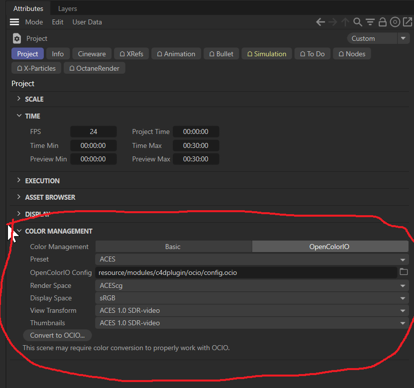 C4D Project Setting Aces
