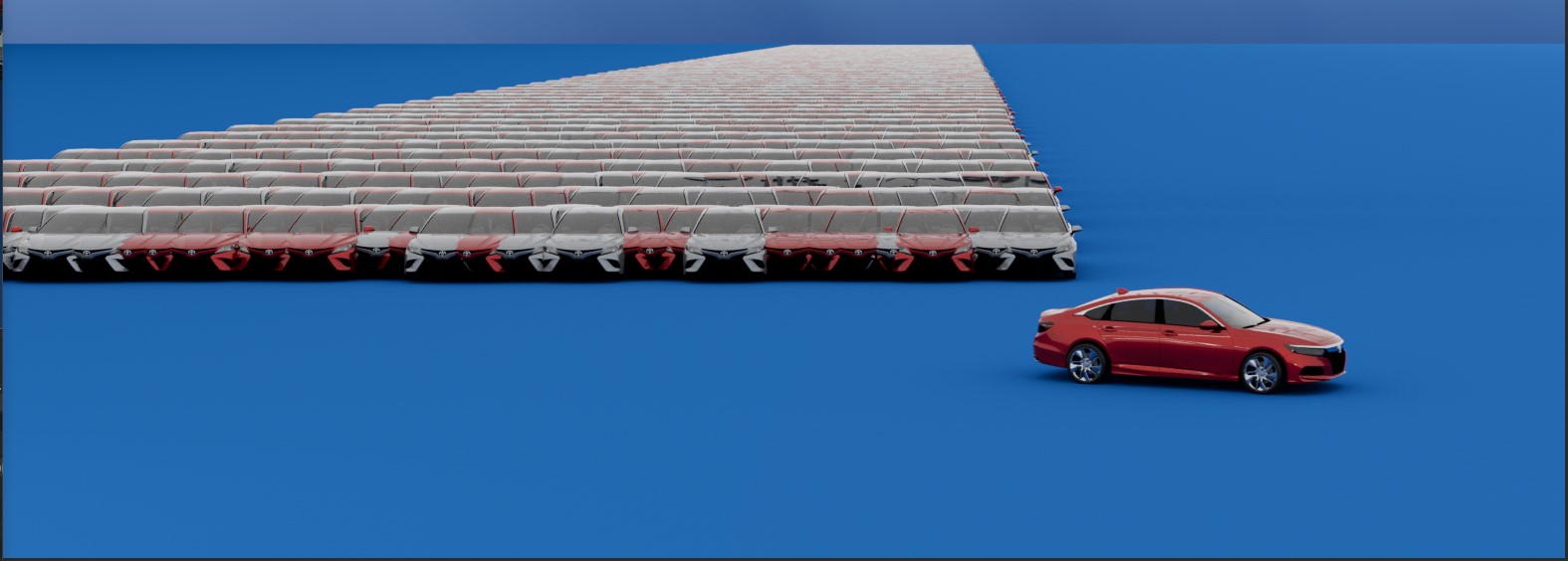Octane Scatter madness. I placed two models in a scatter object and used a subdivided plane as the placement map, using "vertex" as the location for the models to appear. They appear exactly right in the Live Viewer (first picture), but exactly wrong when rendered to the Picture Viewer (as shown in the second picture.)