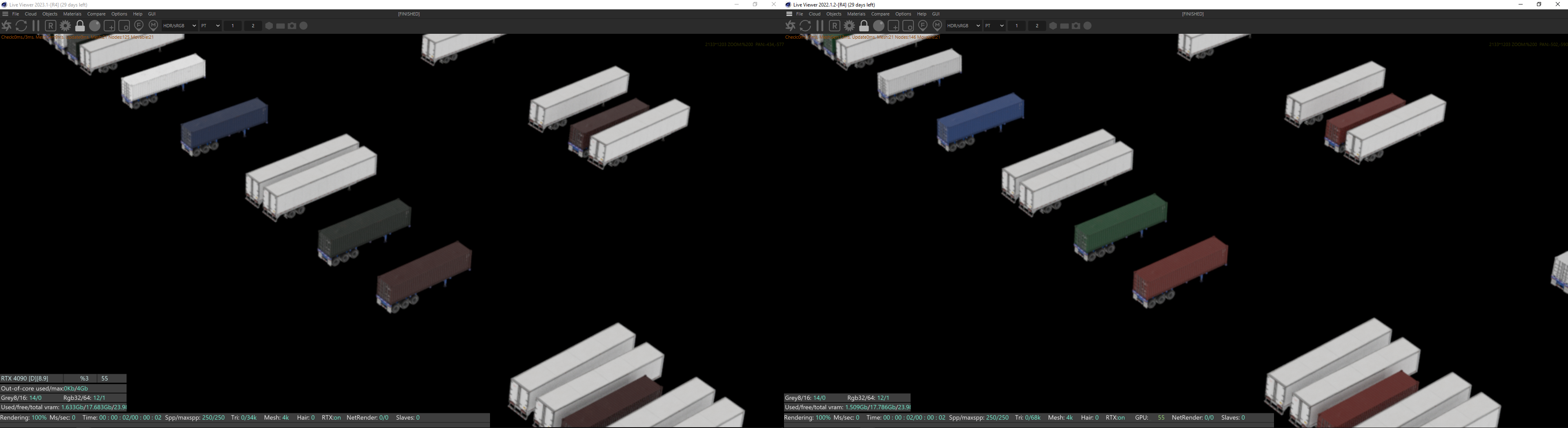 Screenshot attached for the render in Octane 2023 (on the left) vs Octane 2022 (on the right). Something is wrong with 2023. The colors are muted and less saturated with a slightly different hue for some reason. This is the exact same project file and everything. Nothing is changed between the two renders.