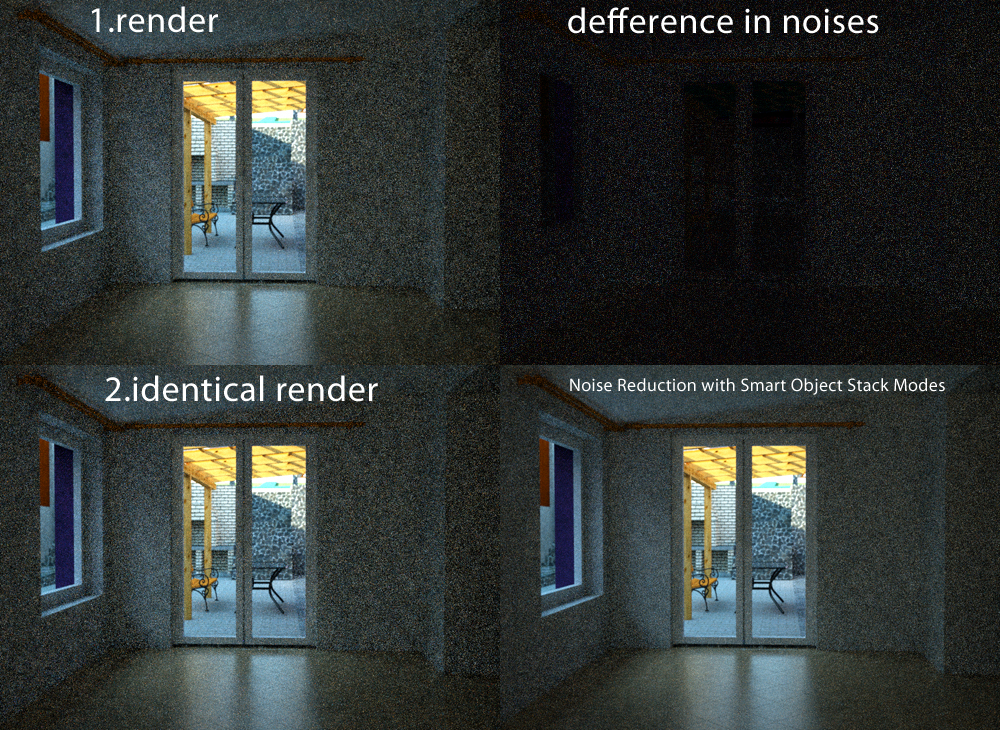 Each render is different in noise. It is good for noise reduction.