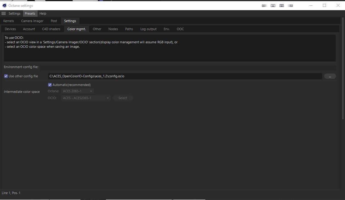 OCIO config file:C:\ACES_OpenColorIO-Configs\aces_1.2\config.ocio loaded.