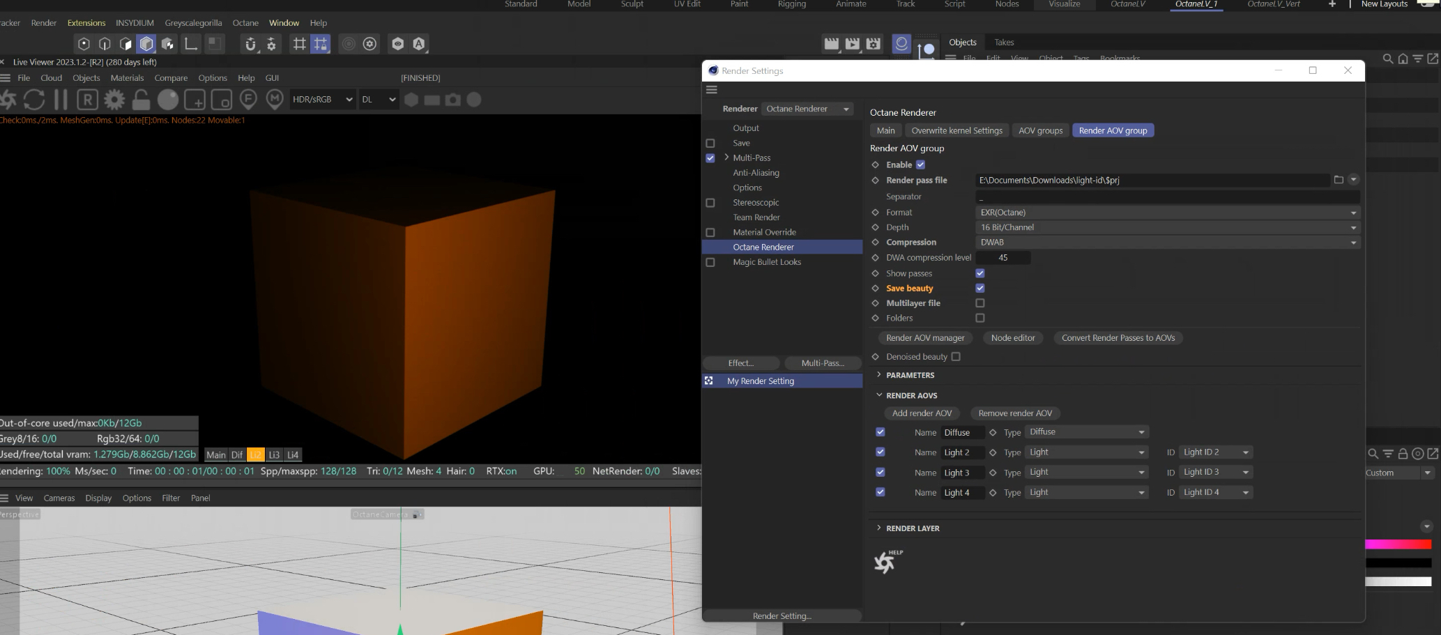 I can not get the Light-Aov's work constantly/reliable in C4D 2024.1.0/Octane 2023 1.2.R2: