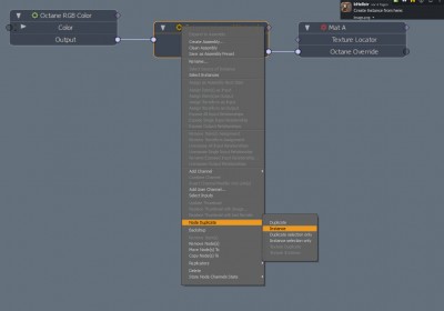 as @funk mentioned on slack. the three dots under the "instanced" nodes show that this node is already being used elsewhere. so i would say that the "instance octane overdrive" is creating the wrong kind of node while it is running.