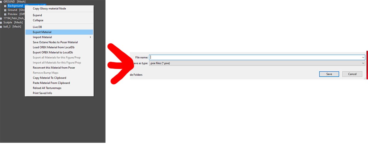 Sorry there was a misunderstanding. I meant exporting materials setting directly from the plug-in. You can see in the screenshot. When I export the background material from the ground model. Shouldn't it say something like.