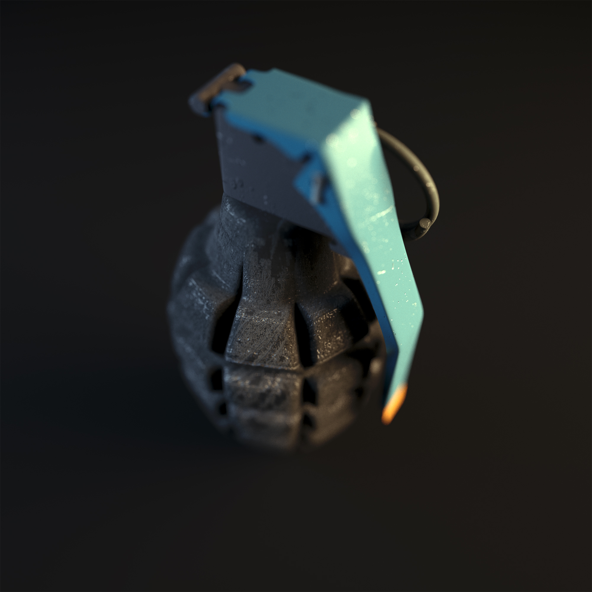 As for the light set up it was very simple. Just two rectangles opposite each other on either side of the grenade. One light was orange and one blue. Thats it.