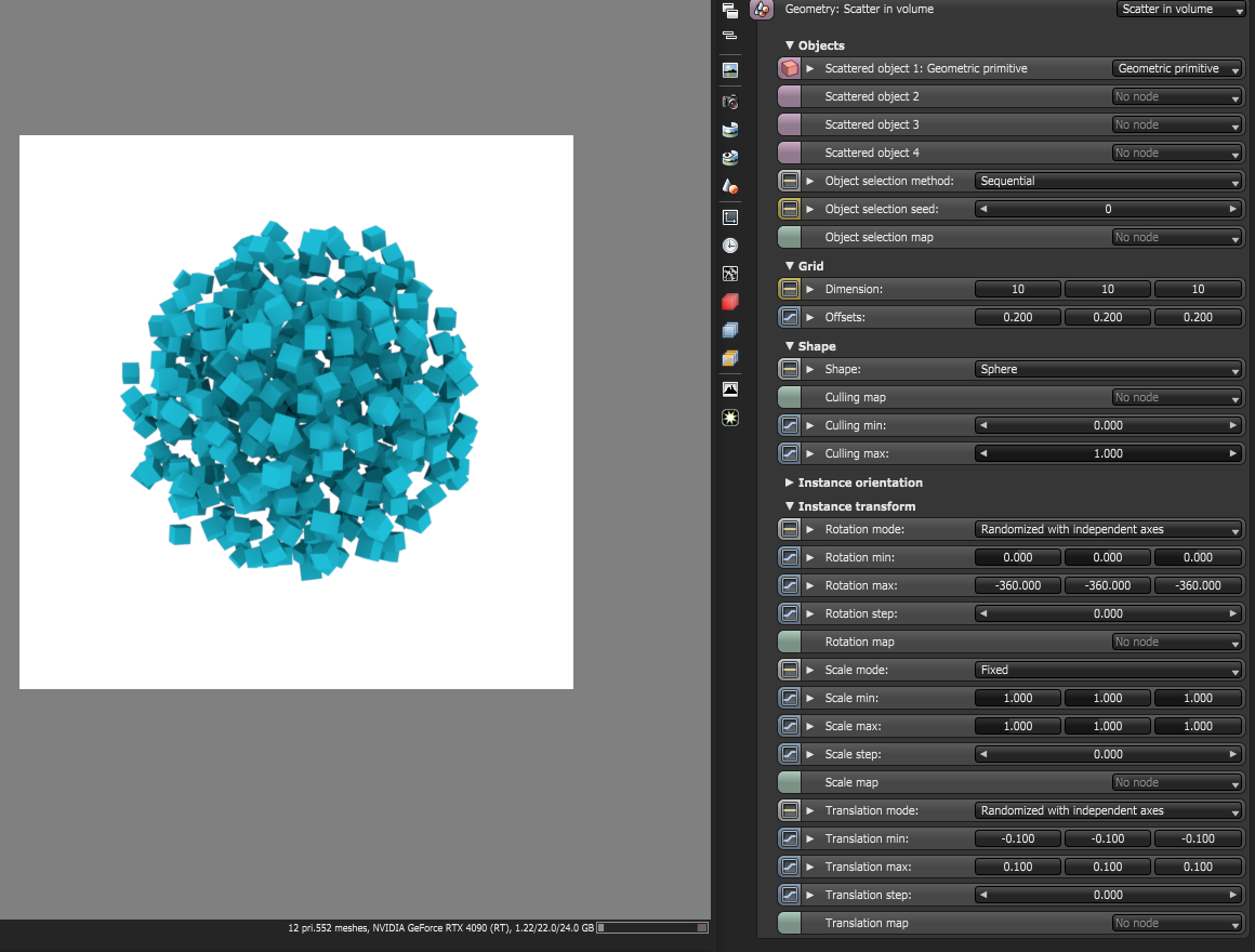 Stand Alone ...Scattering Mesh objects INSIDE a sphere