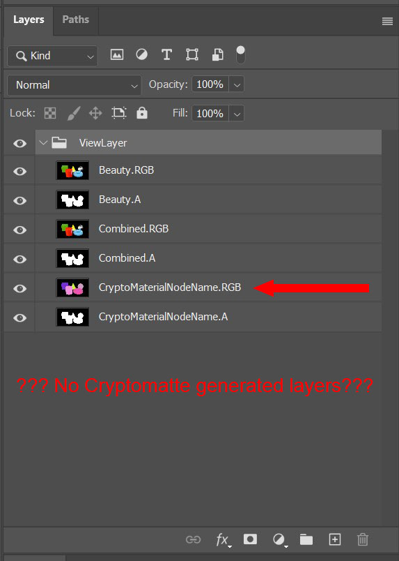 Octane for Blender cryptomattes not creating layers in Photoshop