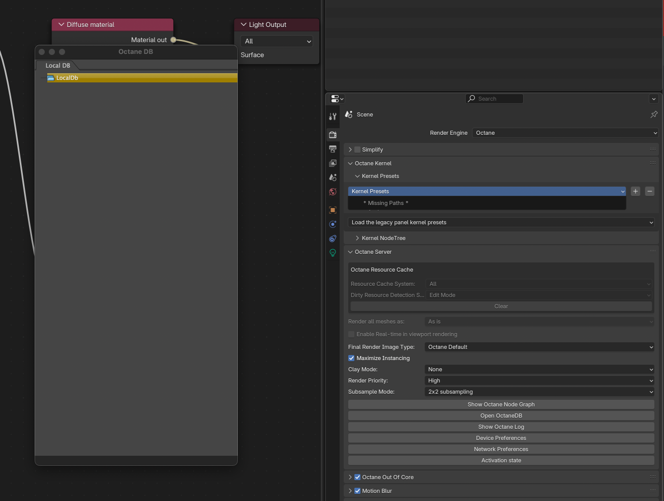 Mac Studio Blender Issues: Kernel Presets - "missing paths" + Octane DB not populating