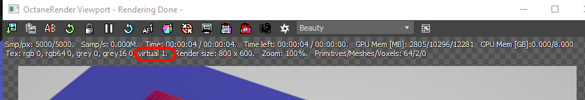 A new texture type 'virtual' is displayed in the Octane Viewport info options : "Tex: rgb NN, rgb64 NN, grey NN, grey16 NN, virtual NN.":