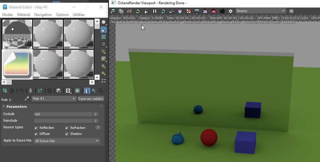 Each object layer can use any number of trace set exclusion rules, which can apply to reflection, refraction, diffuse and shadow ray bounce types