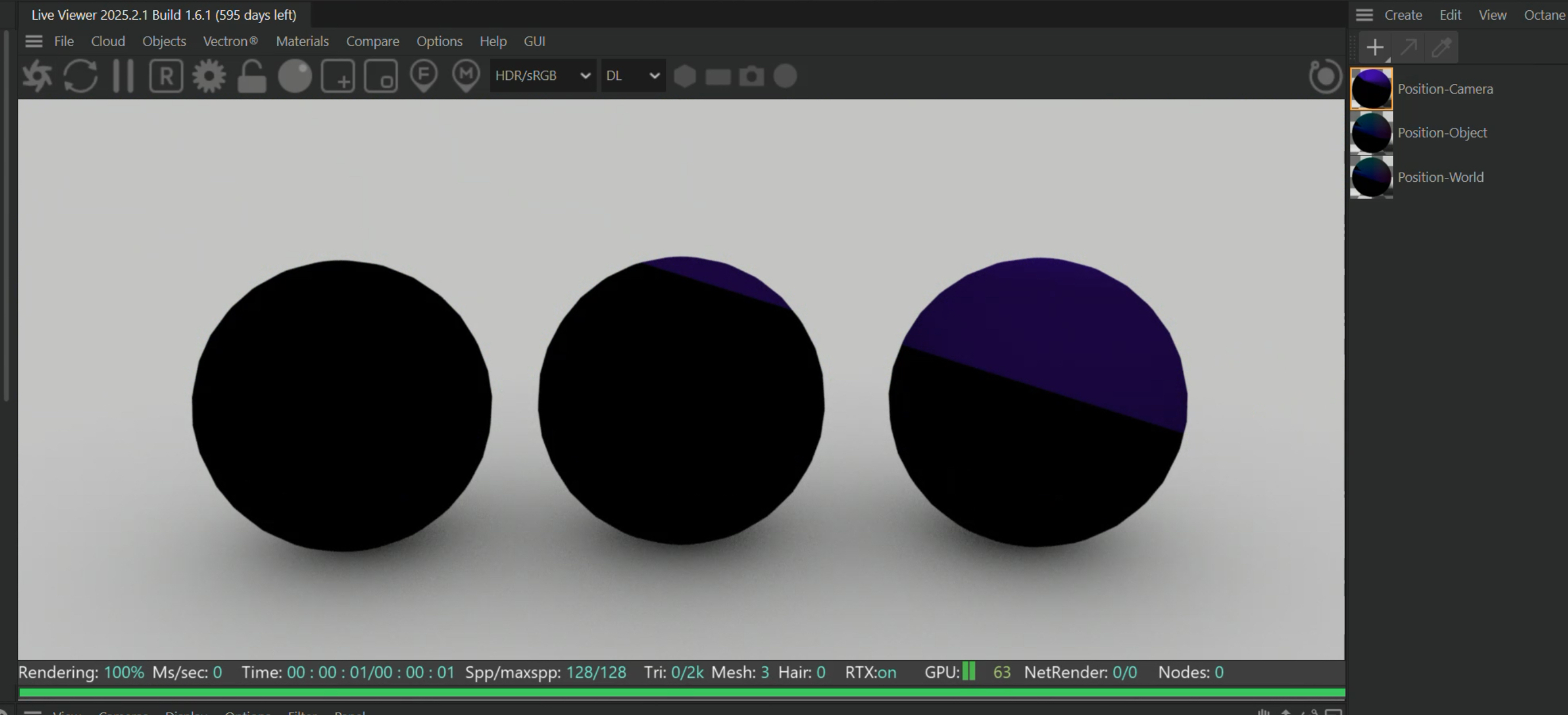Here are three spheres in Position World: