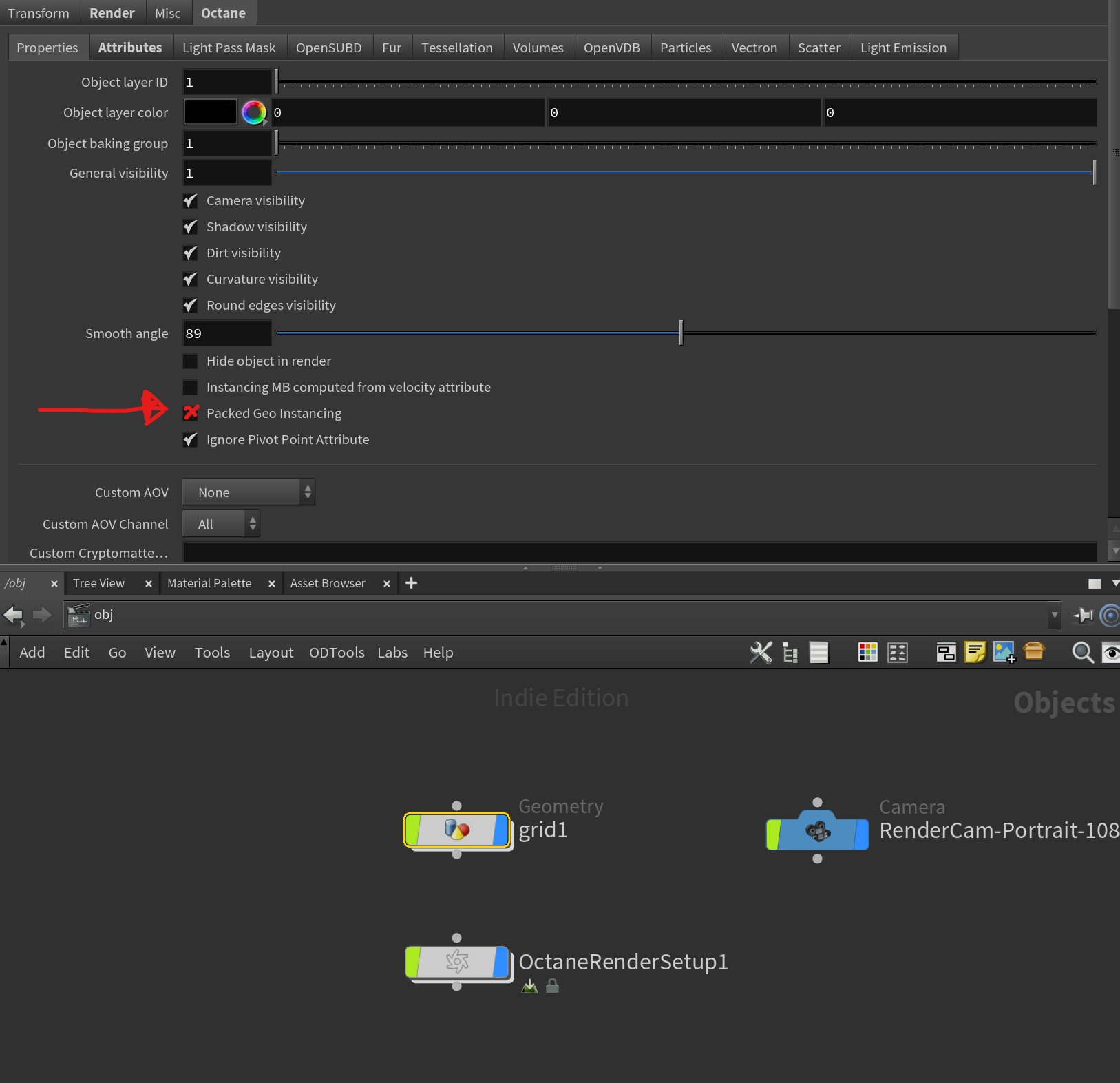 2. Enable "packed instances" in the octane object parms
