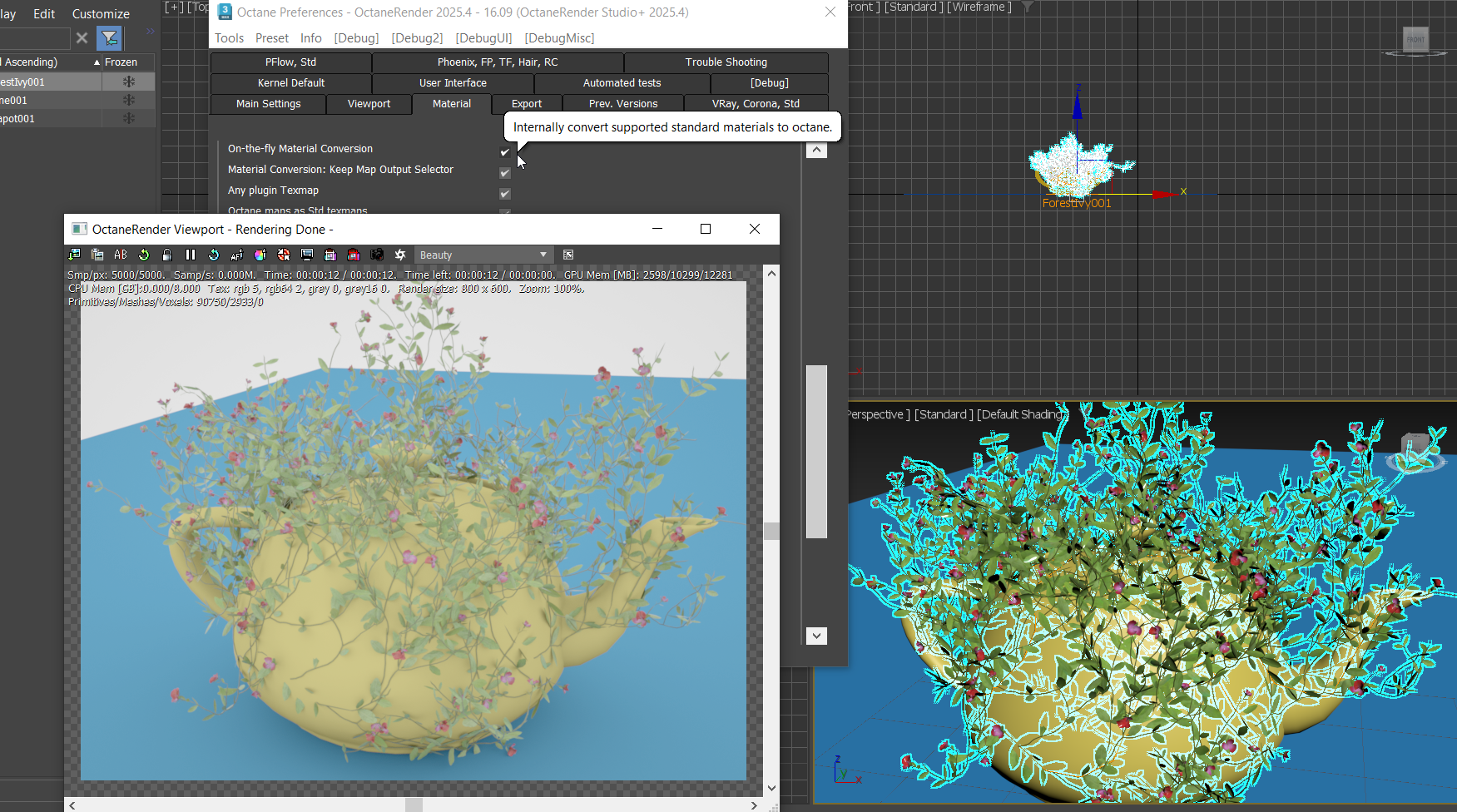 ForestPack IVY objects can be rendered directly with Octane, without converting materials.