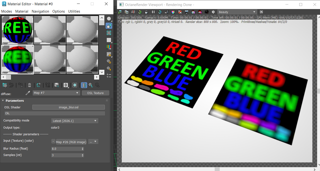 For the blur, there is no such node in Octane for now, so I made a simple OSL texture: