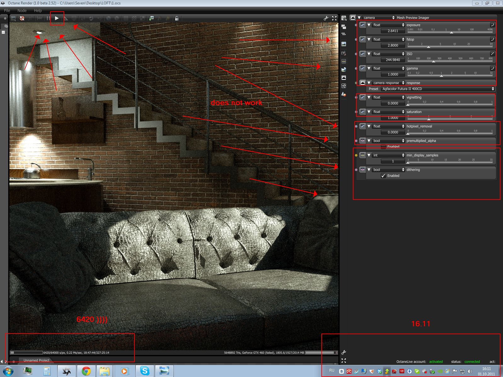 t_3 wrote:to pick just one thing out: i can see form the screenshot, that you use google chrome; now the newest versions of chrome have graphics card accelerated rendering turned on - so in fact if you start chrome, it starts eating up extra(!) gpu resources - and that may easily interfere with octane. if your scene already maxes out the gpu its in general no good idea to have much else going on...
