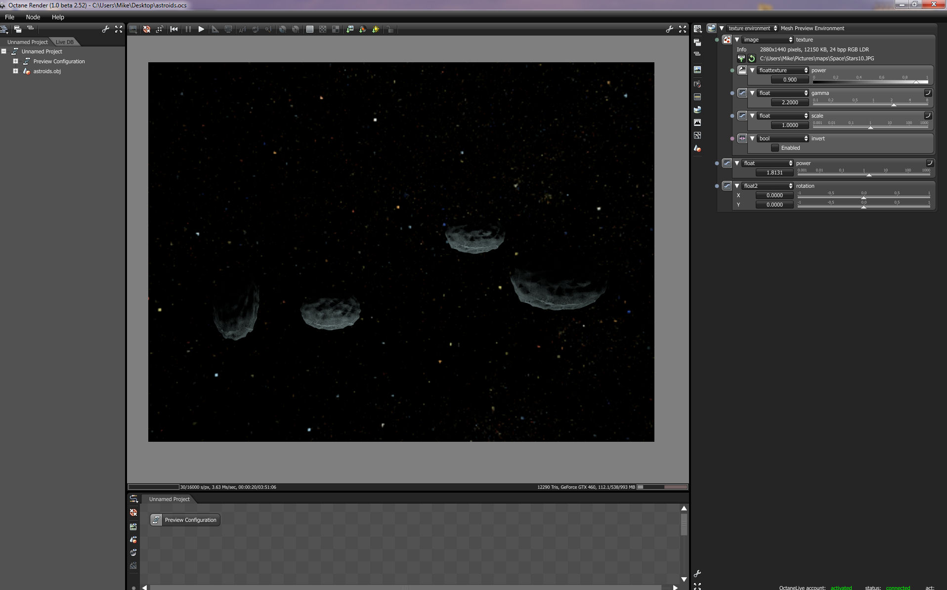 I then used a star map as the environmental map. Render was around a few minutes in PMC kernel.
