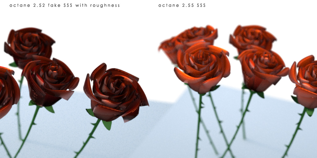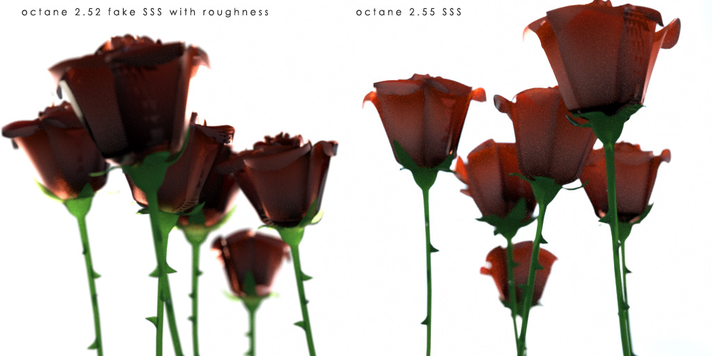 Also the tree might look "nicer" the diffuse one but that's because the tree is seen from under the foilage looking at the sun, so the correct and expected result is the SSS one not the diffuse one. The skin needs a map to control the scattering (the nose seems to fade) and they all need some tweaking but keeping in acount that I've used an "out of the box" specular it looks great, so does the dress, with a subtle transparency.
