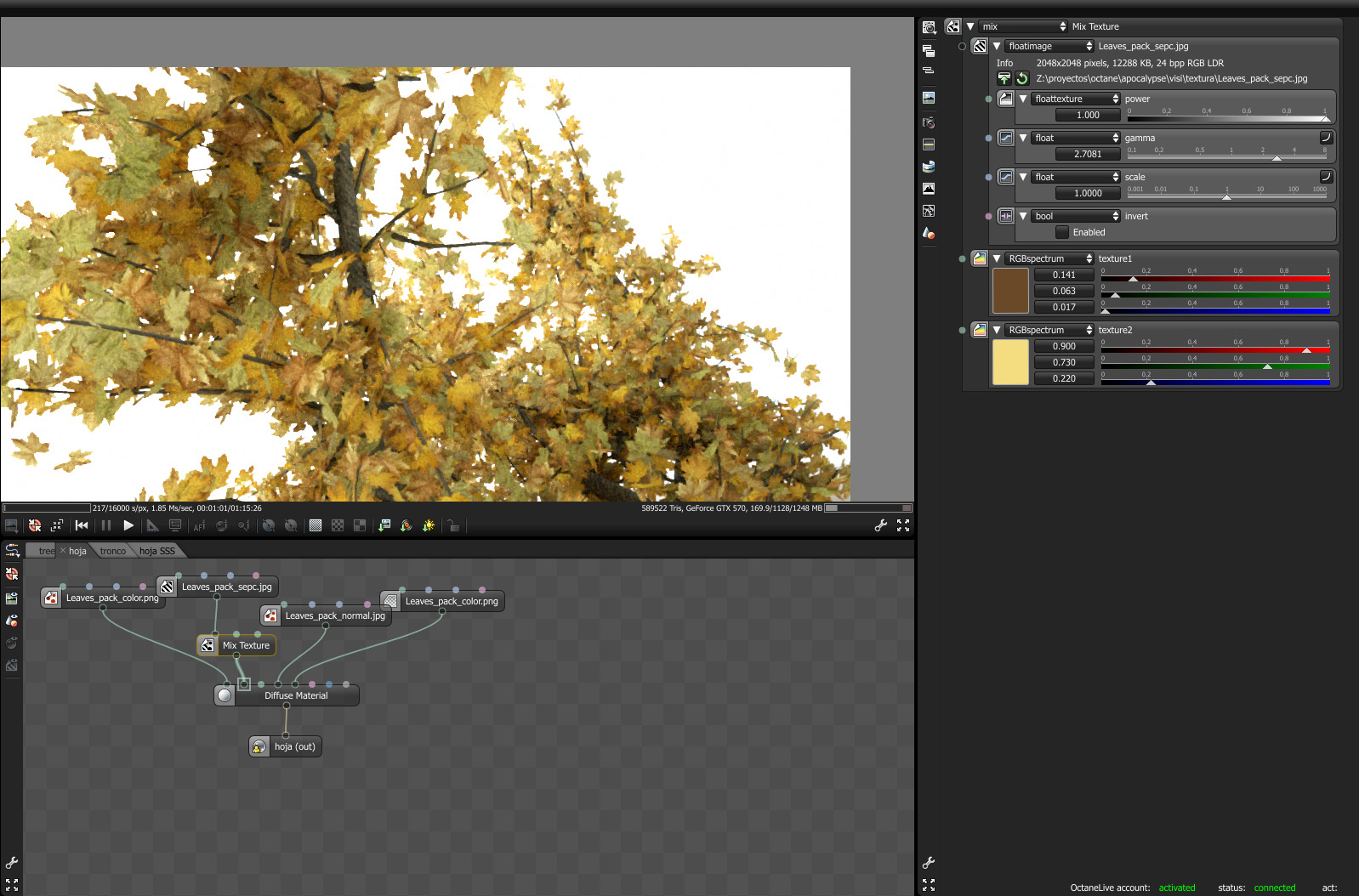 you mean the tree leaves? well there is 4 different leaves instanced in a single textured and aplied to 4 diferent meshes with their uvmaps adjusted so they'll only show one single leaf. I'll share it once I get the material right, now it looks okay but not quite there, but if you need it in a hurry send me a pm and I'll send it to you. You can do this with any software, there is nothing software specific, actually I started this tree following the guidelines of a tutorial for trees for blender and I don't use blender (yet), I did it in max, but it could be achieved in any soft.
