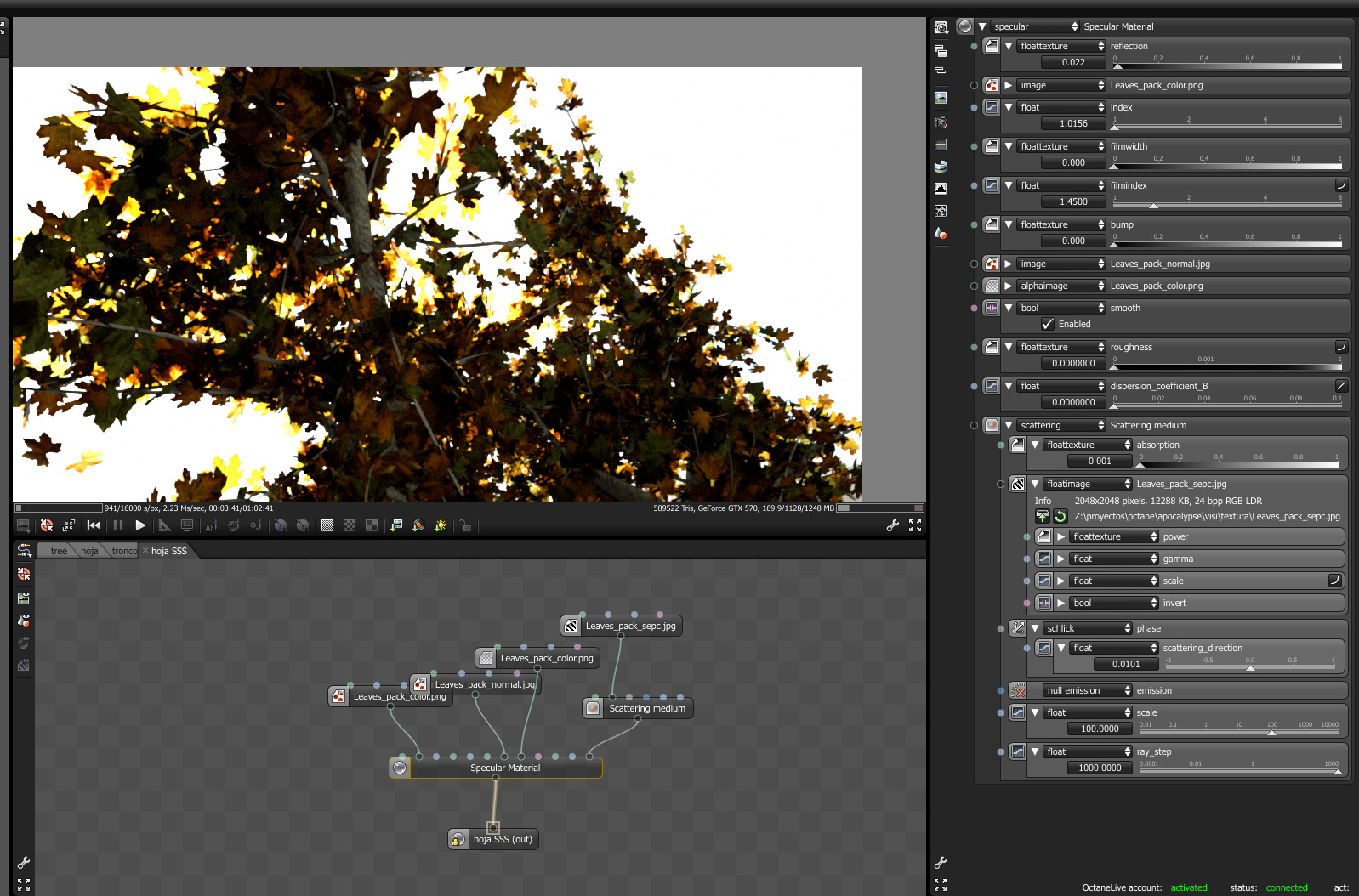 All this examples are work in progress both in modeling and texturing. They've all been rendered in PT for under 2 minutes with an HDRI as light source. I've added a test material render with fake SSS done mixing specular and difuse, or as in the tree just difuse with translucency. You can clearly see that the SSS does not only look much, much better but its quite faster, in the girl from 3.33 with SSS to 2.30 with "my mix", and in the tree same happend and it was against a difusse material! WOW