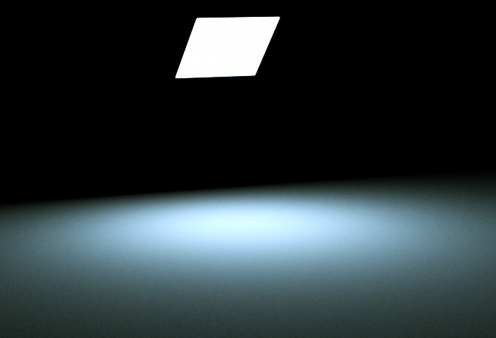 ps: this is still not real-world, as the light emitting plane is gigantic (50x50cm) - a real world light emitter (glowing filament of a light bulb) is a few centimers long and around 1mm thick (and normally it's light is additionally focused by a reflector)...