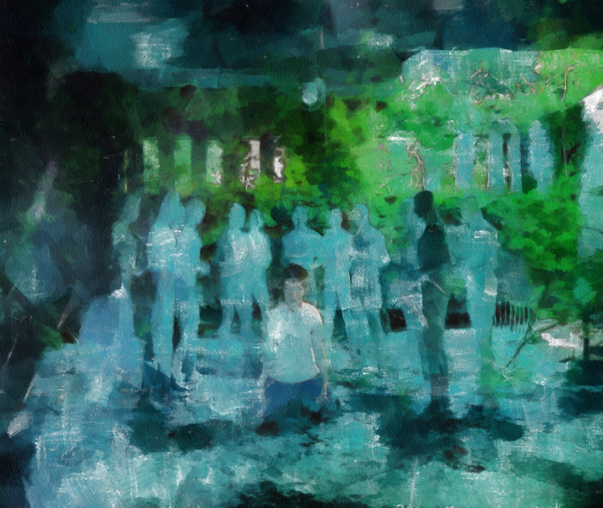 this could prove usefull for extreme noisy renders, but you know you set the mood and the composition right.. which is the main characteristic of any good work, this can give the user a good feedback, work that would be unpresentable could now be used, also works with small resolutions.. in a way seems to work like a rendering engine, in a sense, since it draws shapes on the screen and you let it paint on its own until you are satisfied with the outcome (first though that came to my mind is, this would run super fast on the GPU) as it can take a minute or half an hour to get a picture properly detailed, or leave early when it brushes large strokes..